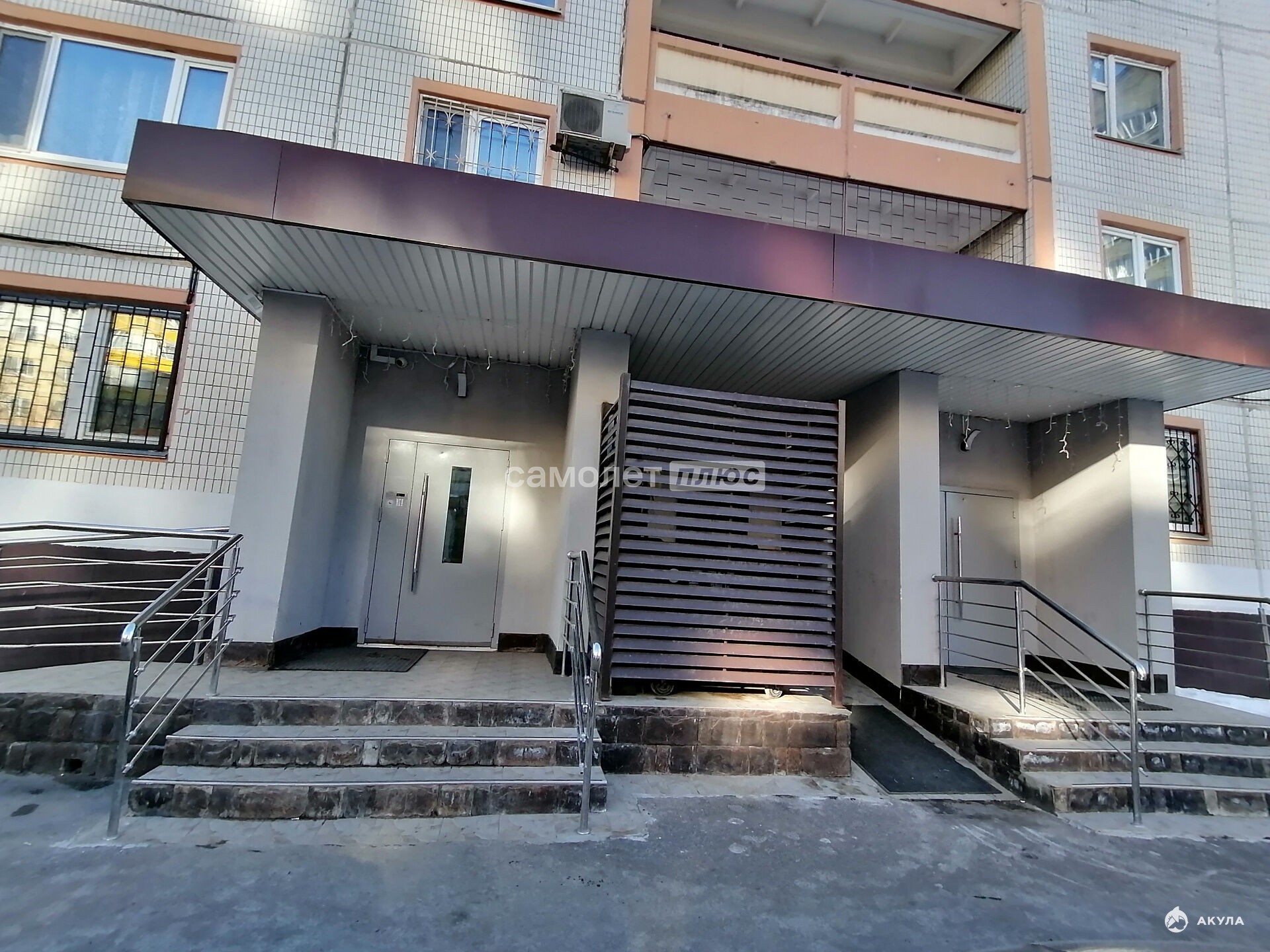 Большие площадки на этажах.