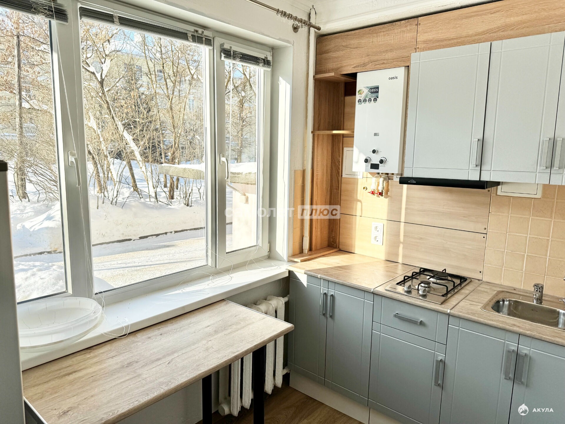 Раздельный сан.узел оснащен новой душевой кабиной, новая газовая колонка, кухонный гарнитур с варочной газовой панелью, холодильник.