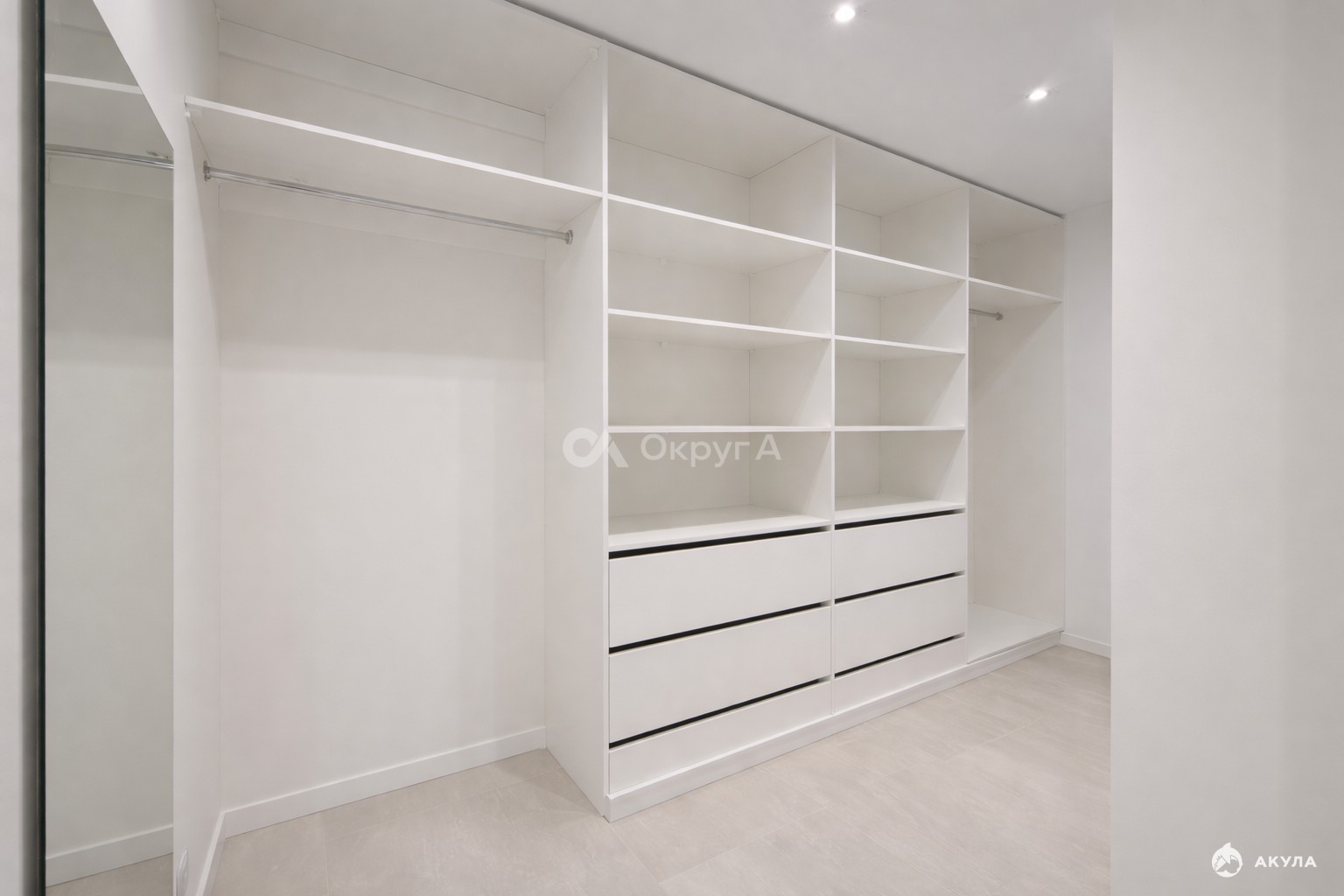Полноценная отдельная гардеробная комната, выполненная по проектным развёрткам.
