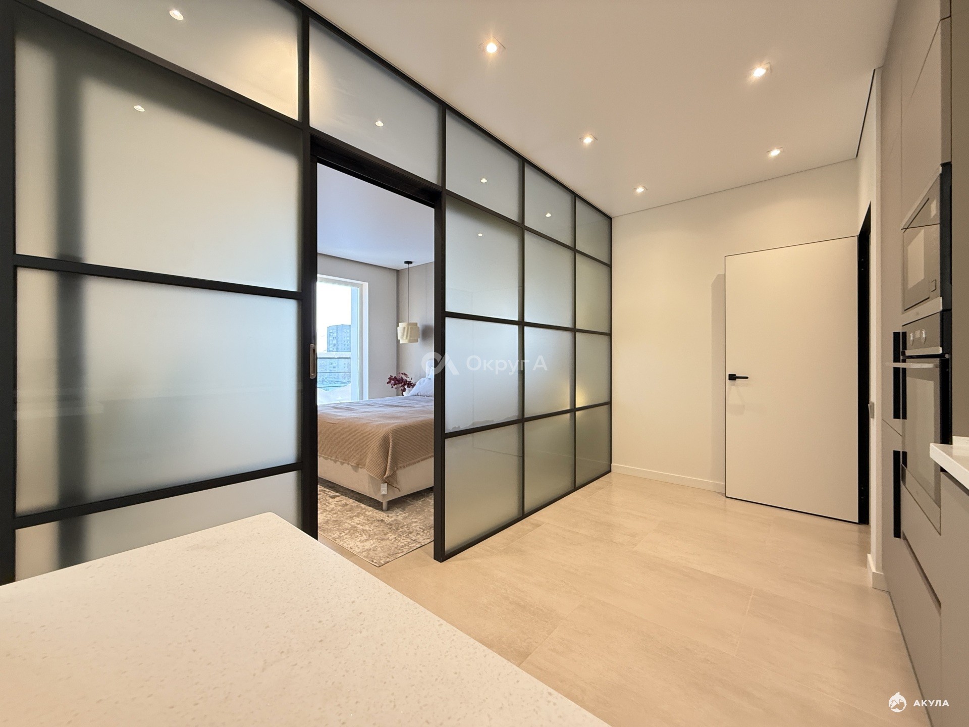 За счёт панорамного остекления квартира получает максимальное естественное освещение и открытую городскую перспективу.